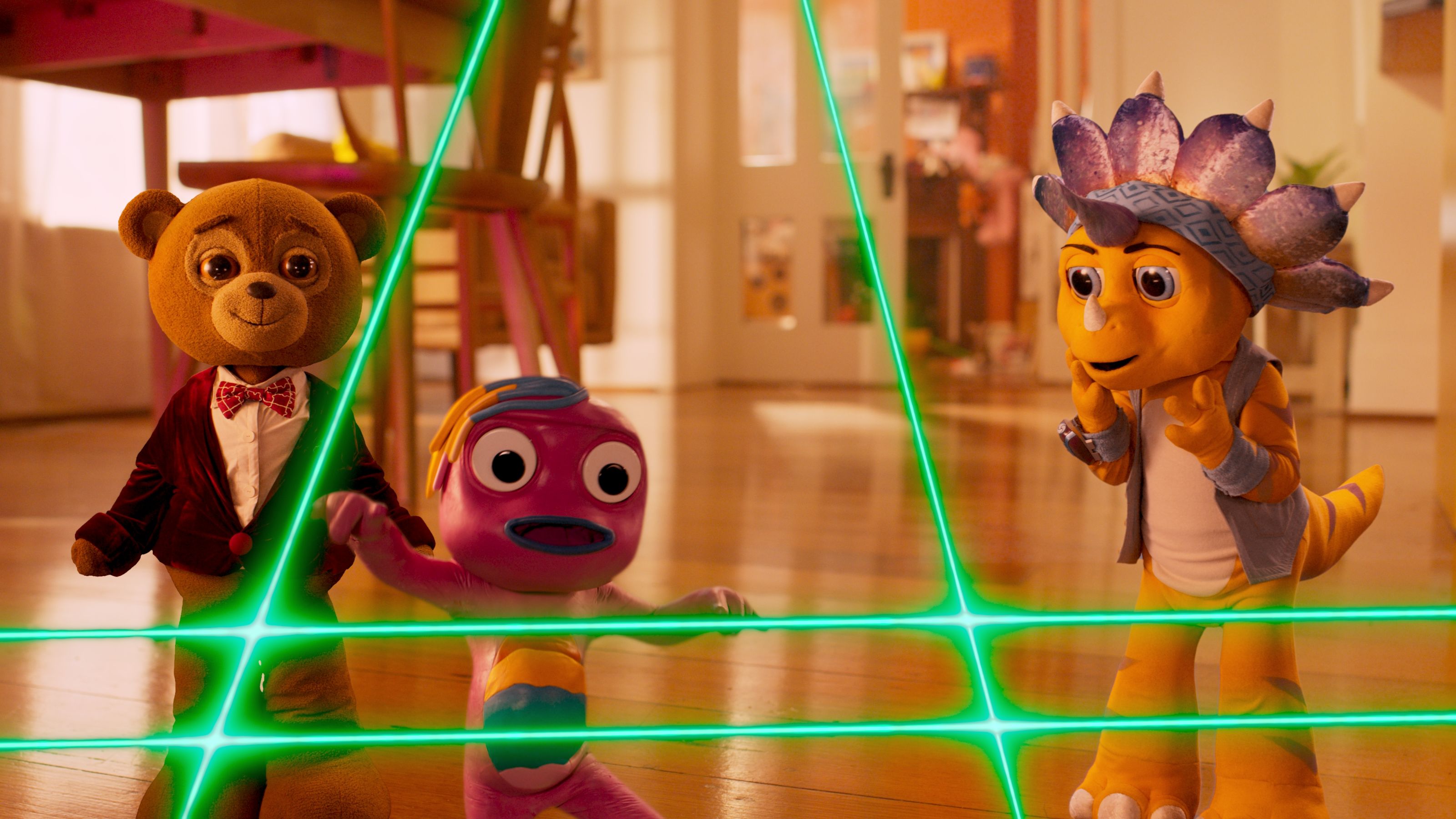 Watch the scene below from Episode 16: ‘'Mission Disco Party Pooper’' where Jeremy Buttons needs to crack the code and complete the puzzle so he is able to get to the other side of the dance floor. Can you help him choose which shape to stand on so he doesn’t get carried away by a giant bubble?