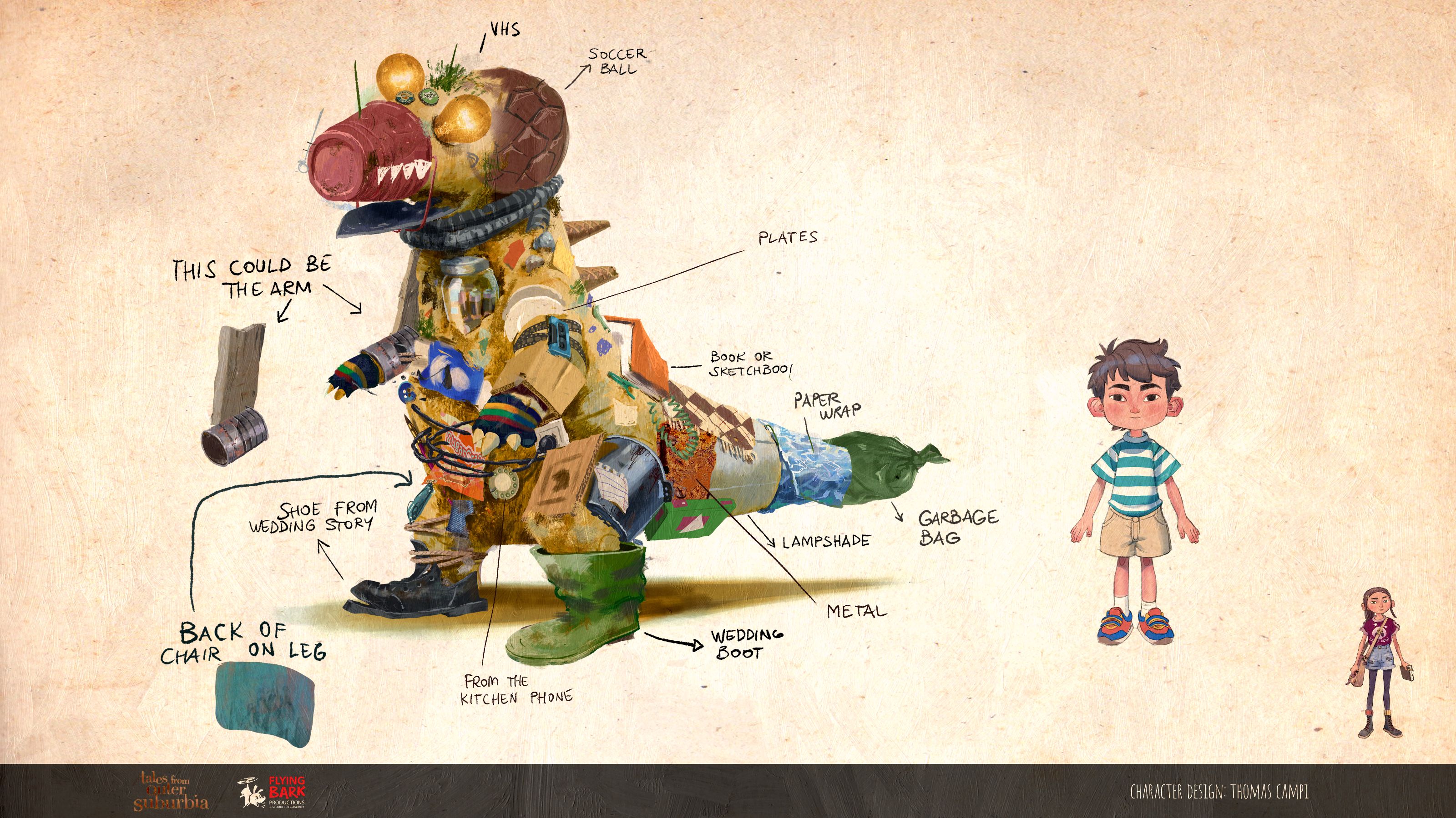 Make your own pet’ of Tales from Outer Suburbia (2008) was originally a piece for an animal charity about rehoming abandoned pets (as my family tended to do a lot growing up - unwanted cats and a deformed budgie). Roadside rubbish days were also big events for scavenging kids. This piece inspired the Tales TV episode ‘Make a friend’ with a similar backyard alchemy used to solve domestic problems.